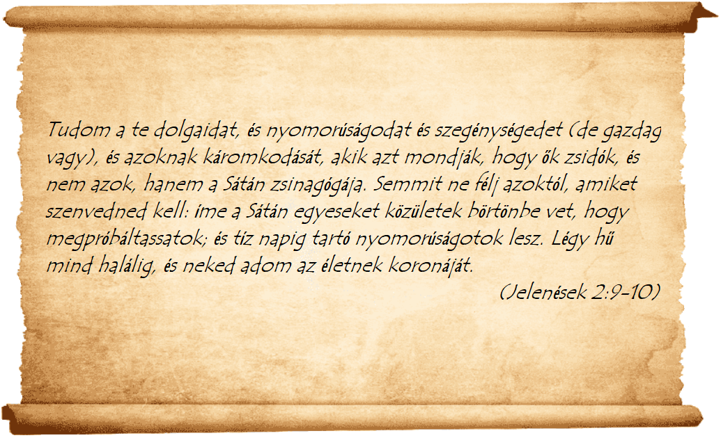 A második levélből megismerhetjük a smirnai kereszténység típusát. Ezek a hívők képviselik az üldözött egyházat, akiknél a hit nem egy kellemes életforma, hanem gyakran életveszélyes döntés.