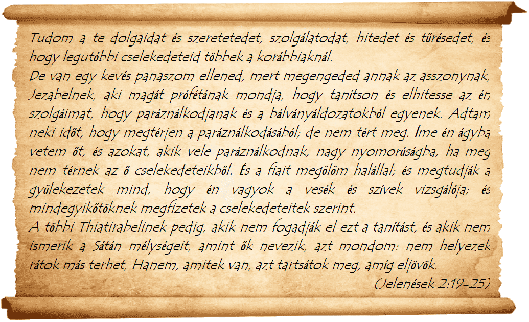 - 5.5 THIATIRA – A SZERTARTÁSOS