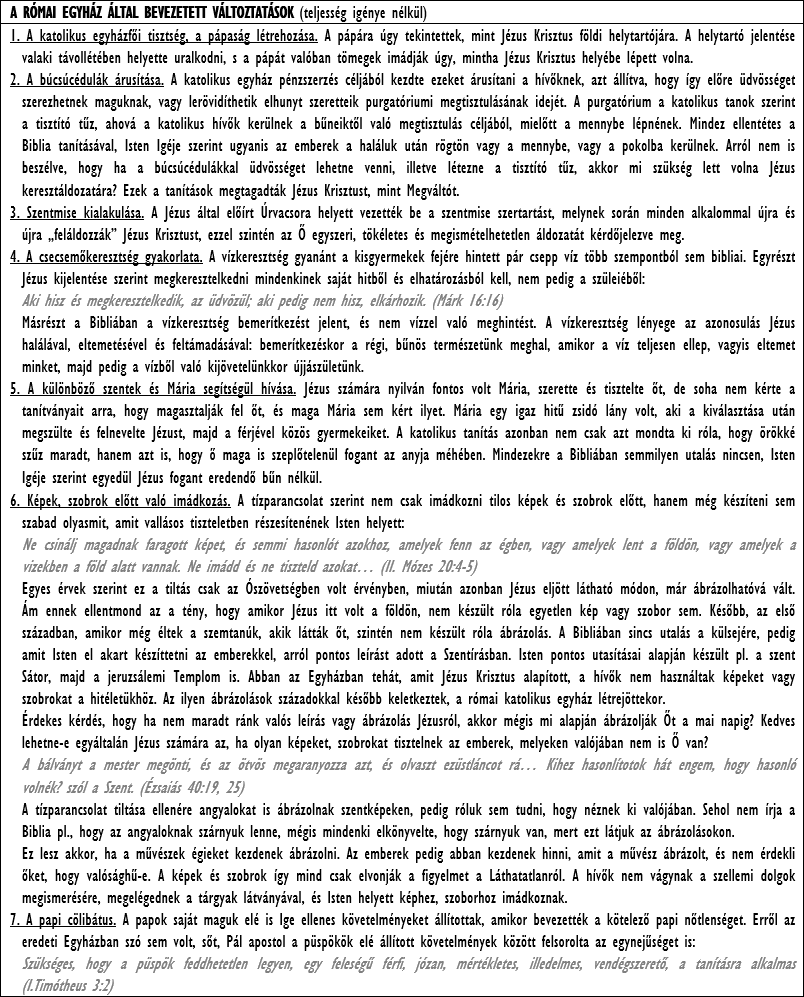 A középkorban a hívőknek nem lehetett Bibliájuk, kizárólag csak a papoknak, az is latinul, hogy még véletlenül se értse meg más, hogy mi van benne. Pedig bizonyára akkor is sok olyan katolikus hívő volt, akik őszintén szerették volna az Urat szolgálni, de az élő Isten helyett félrevezető hamis tanításokkal találkoztak. Az embereknek abban kellett hinniük, amit a papok mondtak nekik. Így fordulhatott elő pl., hogy a keresztes hadjáratok során Isten nevében mészároltak le embereket. Ma azonban már mindenkinek lehet Bibliája, ne szalasszuk el a lehetőséget az Ige tanulmányozására!